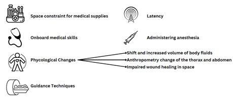 Specifically, our team has funding secured to explore extension of robotic surgery for space applications as NASA ventures towards extended crewed Mars missions. Figure 2 provides an illustration of the main issues associated with surgery beyond low earth orbit.