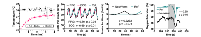 Our patented device, NeoWarm, is a disinfection wipe-friendly infant carrier that serves the need for thermal management and vital signs monitoring of premature infants during and in between KMC. NeoWarm has integrated fabric heating pads that generate heat from a lightweight, rechargeable, portable battery pack in similar fashion to an electric jacket. NeoWarm also includes sensors for heart rate, respiratory rate, blood oxygen, and temperature, to monitor the infant’s key vital signs to detect signs of hypothermia and other complications such as apnea or SIDS. NeoWarm is safe and effective as demonstrated in pilot studies using hypothermic newborn piglets. NeoWarm was able to warm hypothermic pigs to normal, core body temperature, while piglets struggled to reach normal body temperature without NeoWarm. Given the strength of our benchtop and preclinical studies, our present study aims to validate NeoWarm in a clinical setting with human babies in collaboration with the Indiana School of Medicine and Moi University College of Health Sciences in Eldoret, Kenya.